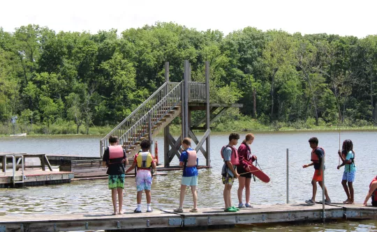 Docks surround our swimming area so our lifeguards can keep a watchful eye on campers.
